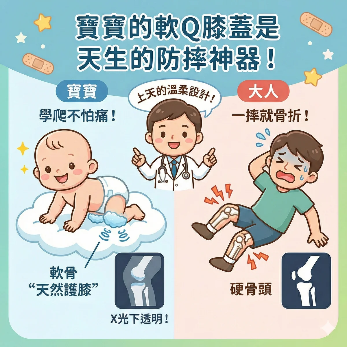 嬰兒照 X 光為什麼看不到膝蓋骨?別緊張,這是老天爺給寶寶最棒的禮物!復健科醫師揭開「隱形膝蓋」的秘密,告訴你為什麼軟骨是寶寶學爬學走的天然安全氣囊。
