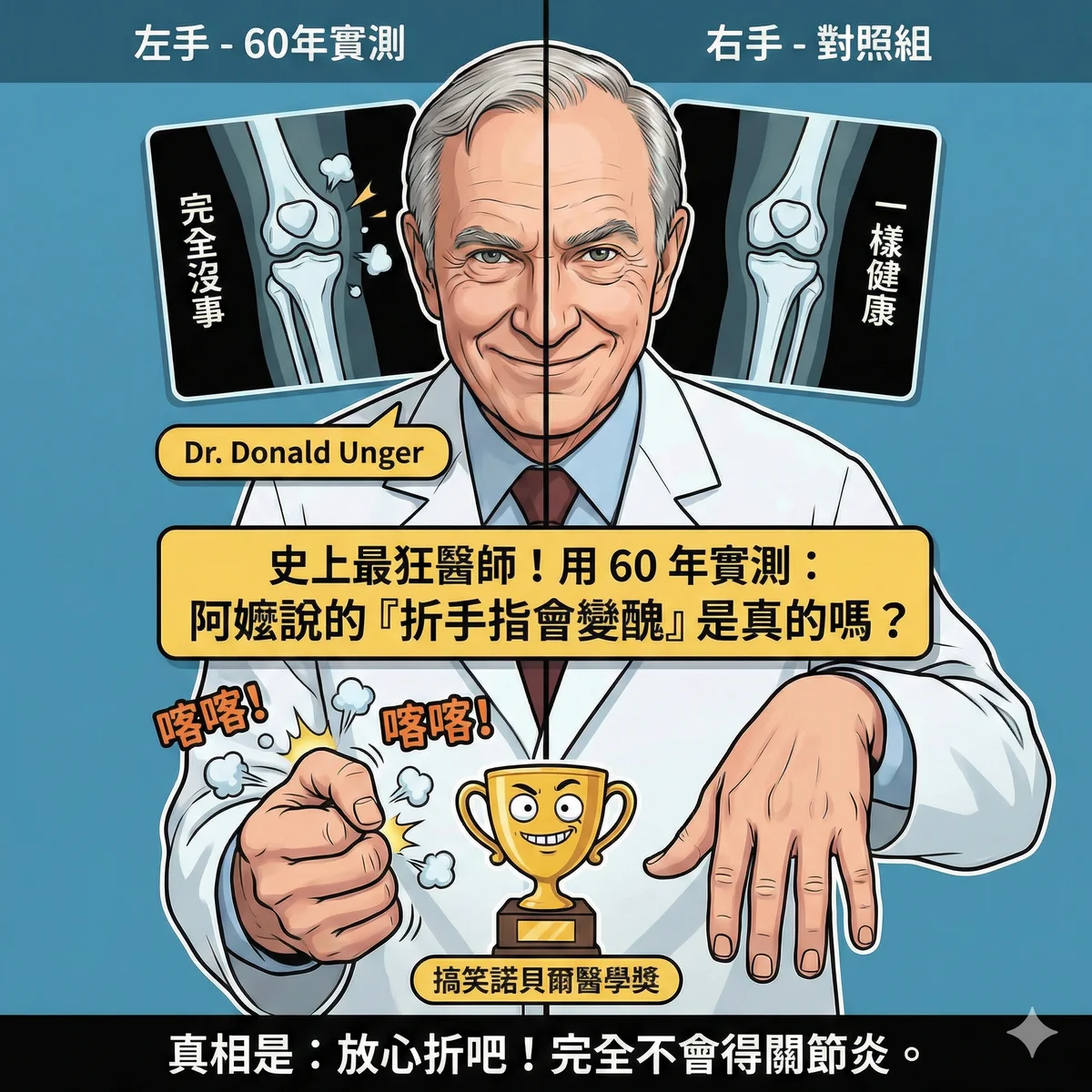 史上最狂醫師!用 60 年實測:阿嬤說的『折手指會變醜』是真的嗎?