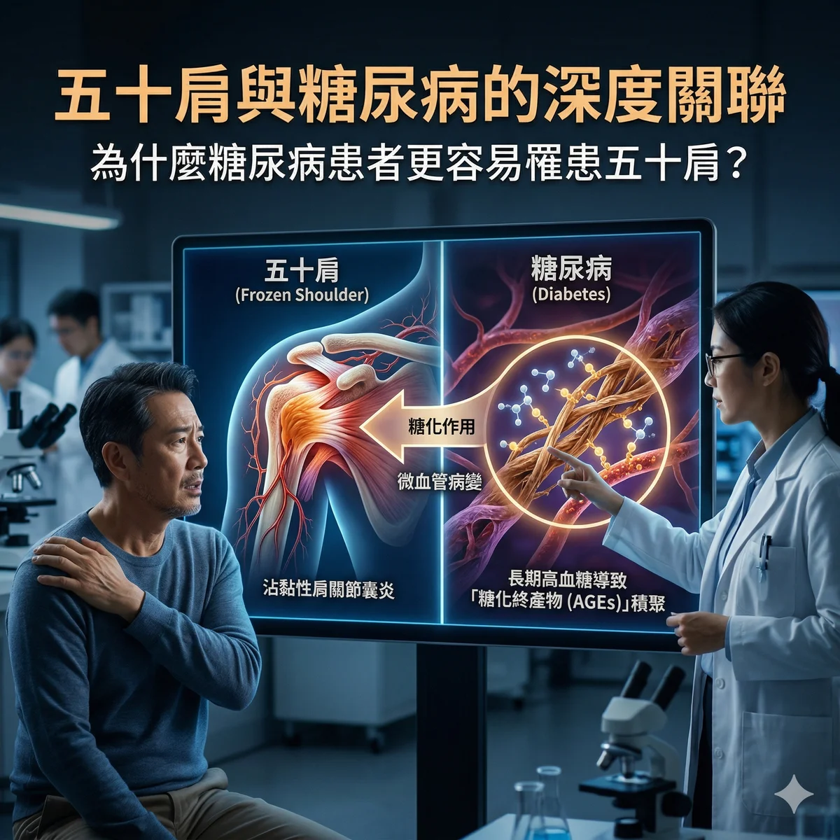 糖尿病患者五十肩風險高出5倍!深入解析AGEs糖化機制、血糖控制與五十肩的關係,以及完整治療選項比較。